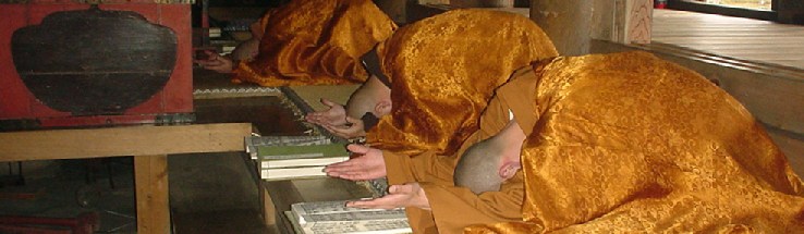 過去・現在・未来の三千の仏様のお名前を唱えながら、五体投地礼を行います。